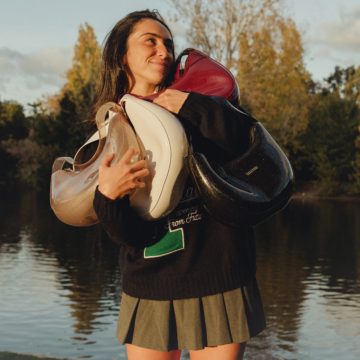 Nouveauté de la collection automne/hiver, le sac LUA séduit par son design en forme demi-lune et son effet vinyle brillant qui capte la lumière avec modernité. Sa large anse permet un porté épaule confortable, tandis que son format généreux accueille facilement toutes vos affaires du quotidien. Entièrement conçu en PVC parfumé et résistant à l’eau, il allie praticité et style, même sous la pluie. À la fois tendance et fonctionnel, le sac noir LUA complète avec éclat la gamme d’accessoires Cacatoès et s’impose comme la pièce incontournable pour accompagner vos looks de saison.