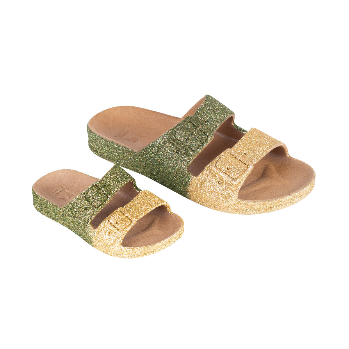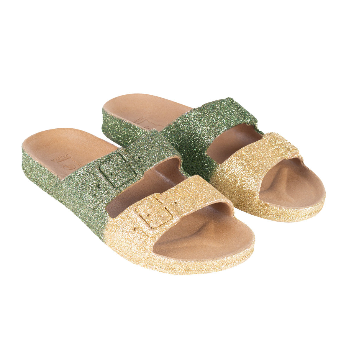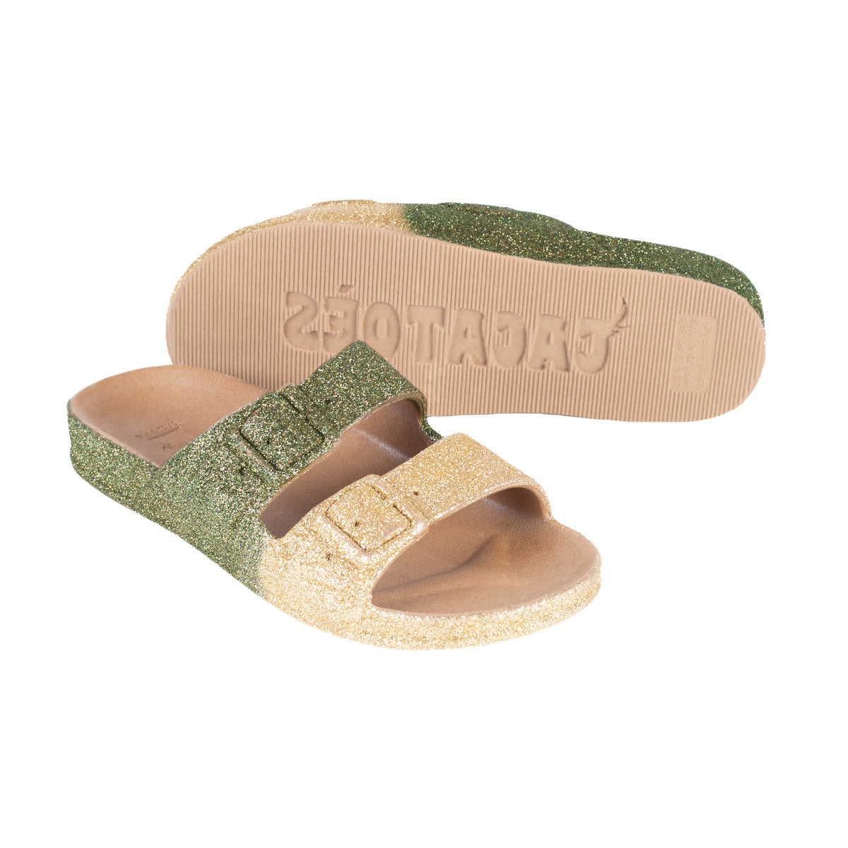 Des paillettes par milliers avec ces sandales pailletées Cacatoès, découvrez les MOSSORO KAKI une sandale à paillettes pour femme. Déclinée dans une version à deux brides beige et kaki, elle est sobre et fera briller toutes vos tenues.