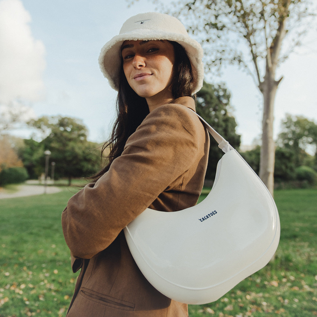 Nouveauté de la collection automne/hiver, le sac LUA séduit par son design en forme demi-lune et son effet vinyle brillant qui capte la lumière avec modernité. Sa large anse permet un porté épaule confortable, tandis que son format généreux accueille facilement toutes vos affaires du quotidien. Entièrement conçu en PVC parfumé et résistant à l’eau, il allie praticité et style, même sous la pluie. À la fois tendance et fonctionnel, le sac blanc LUA complète avec éclat la gamme d’accessoires Cacatoès et s’impose comme la pièce incontournable pour accompagner vos looks de saison.
